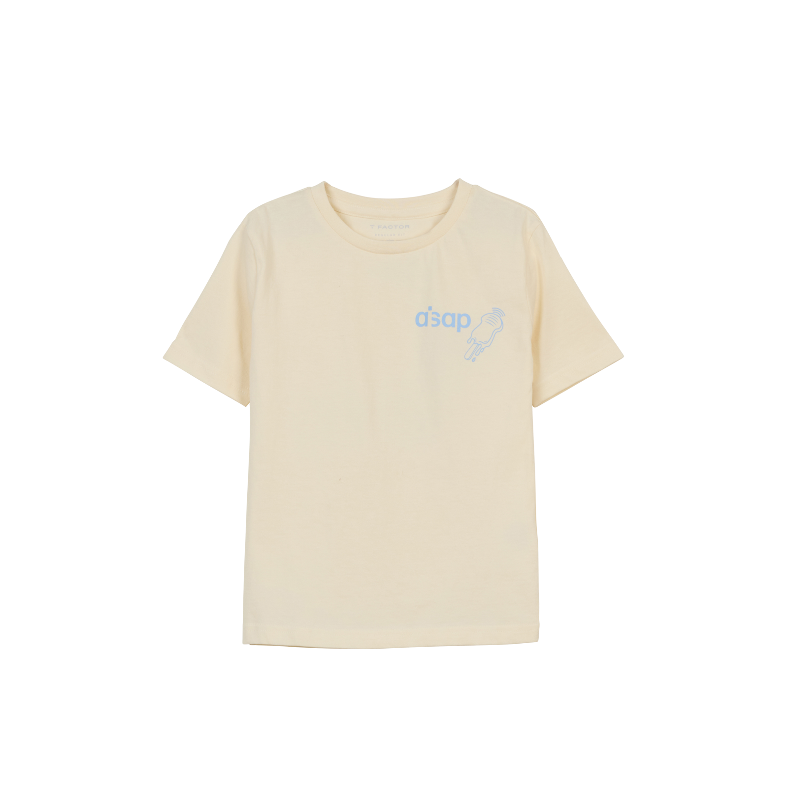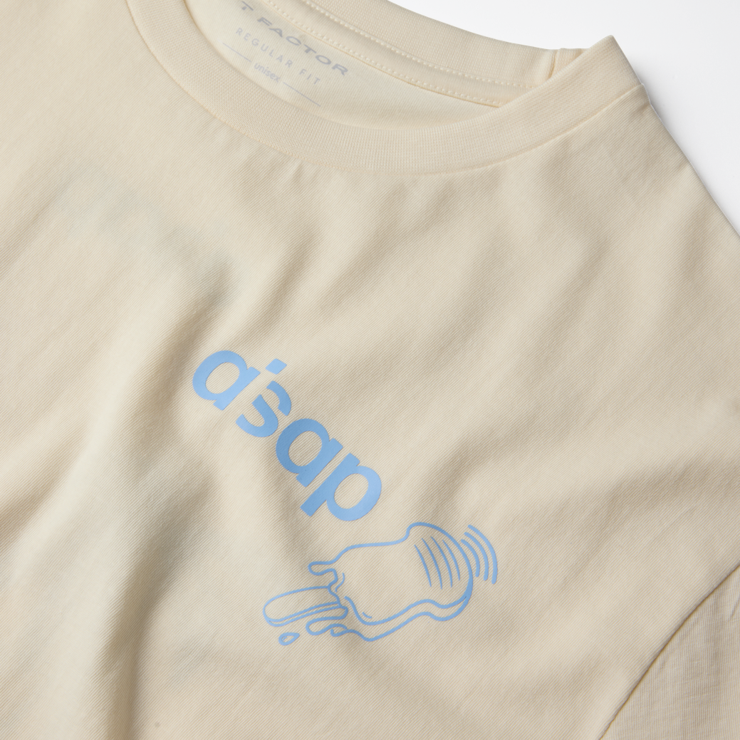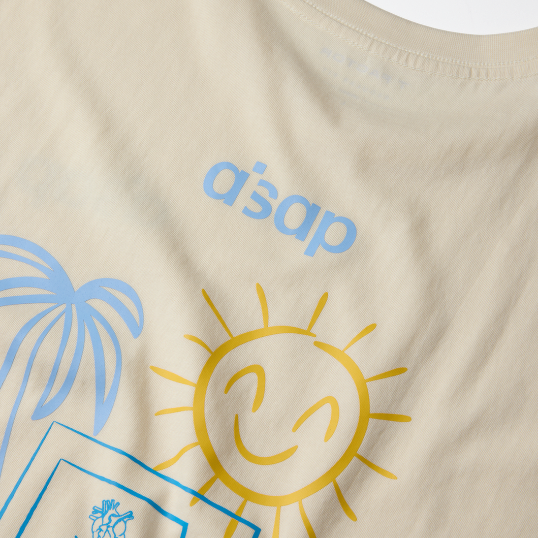 The AISAP kids' T-shirt brings the beach vibe wherever you go with the AISAP Summer Tee. Made from soft cream cotton, this shirt features a minimalist blue chest print, and a bold back print.